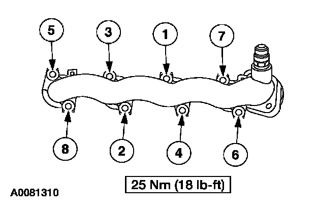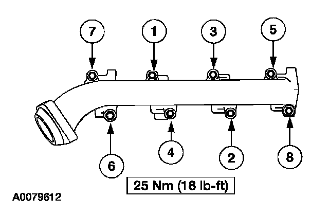 LH Exhaust manifold bolts 25 Nm (18 ft.lbs.).
