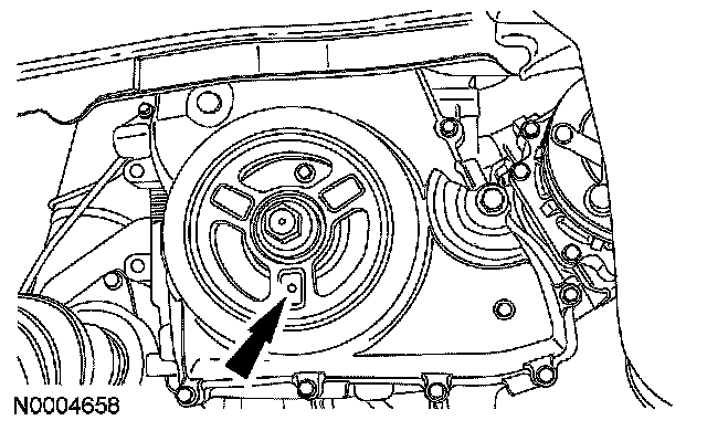 ^ The hole in the crankshaft pulley should be in the 6 o'clock position.