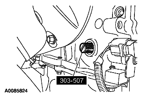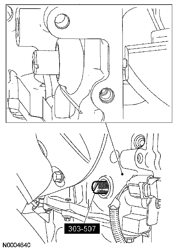 6. CAUTION: The special tool 303-465 is for camshaft alignment only. Using this tool to prevent engine rotation can result in engine damage.