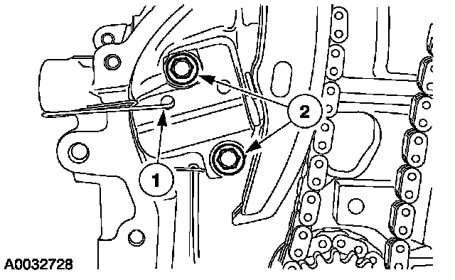 1. Compress the timing chain tensioner, and insert a paper clip into the hole to retain the tensioner.