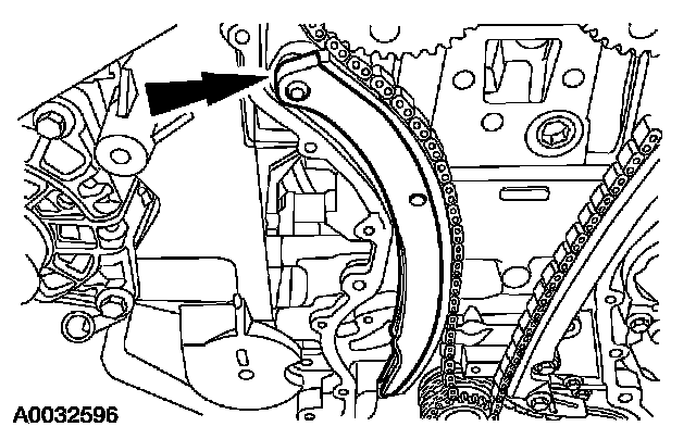 20. Remove the bolts and the LH timing chain guide.