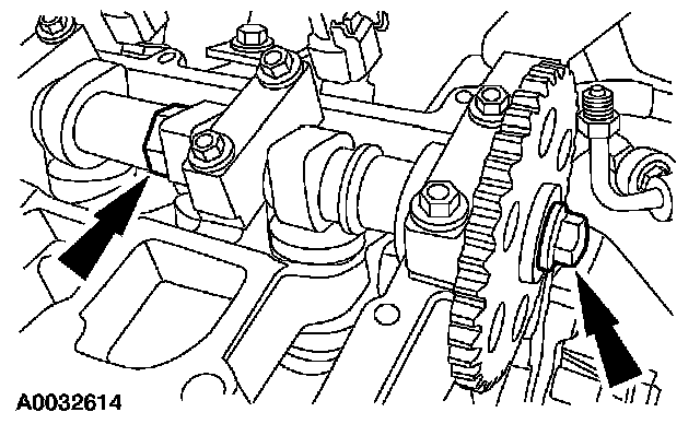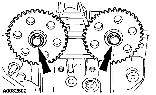 1. Install the camshaft sprockets and the bolts. Do not tighten the bolts at this time.