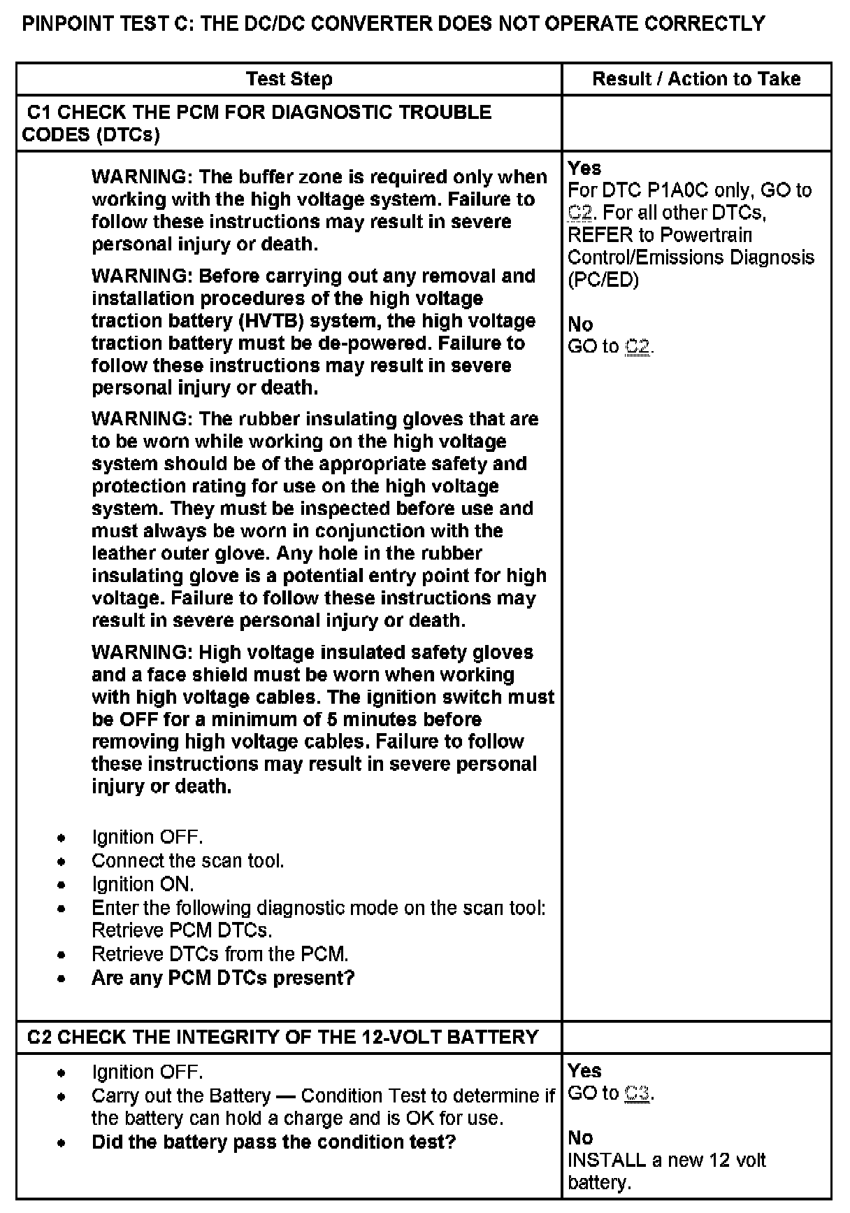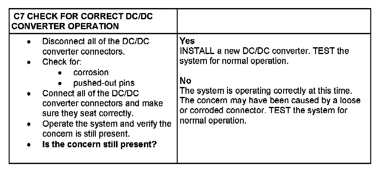 PINPOINT TEST C: THE DC/DC CONVERTER DOES NOT OPERATE CORRECTLY