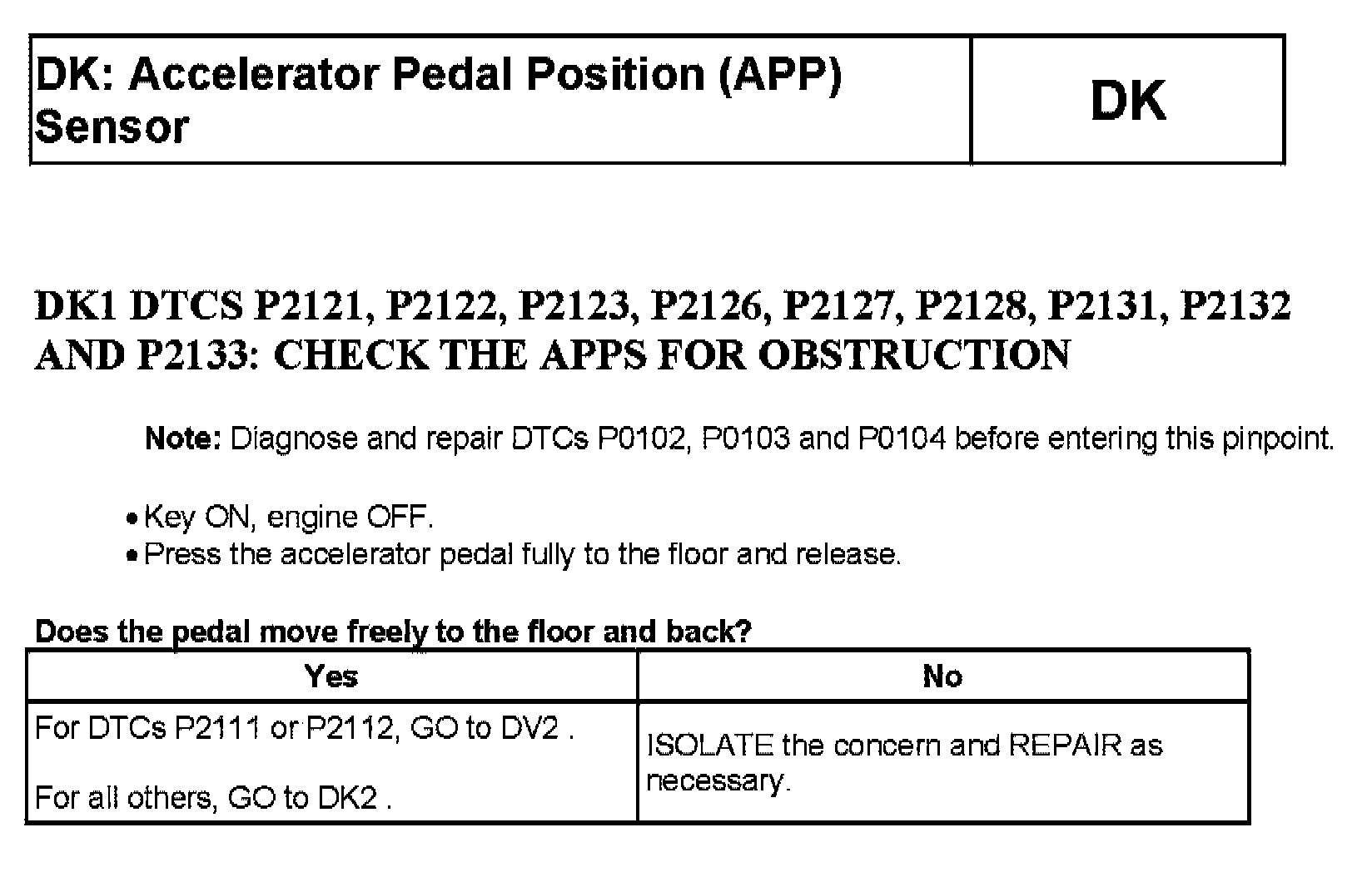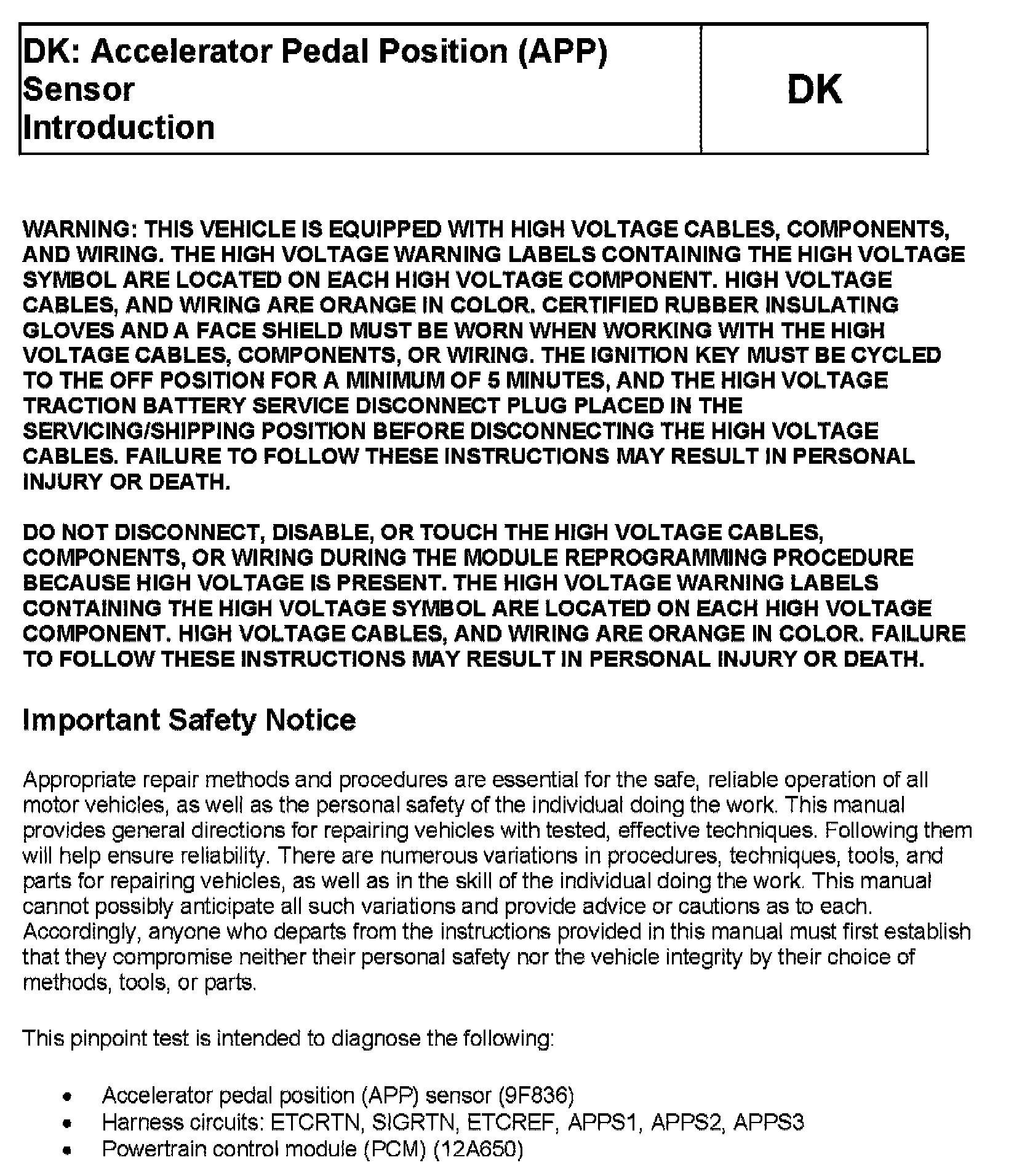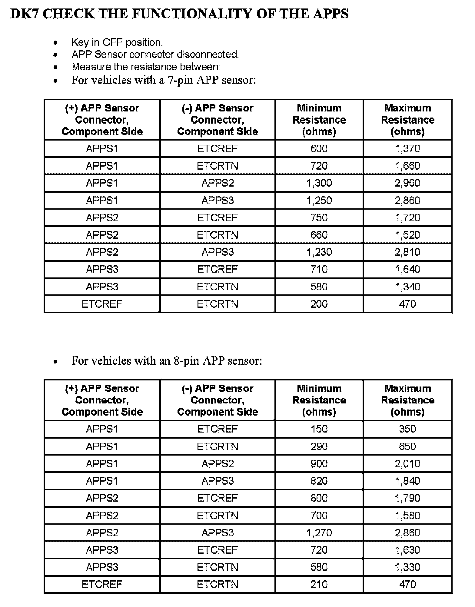 Tests DK: Accelerator Pedal Position (APP) Sensor
