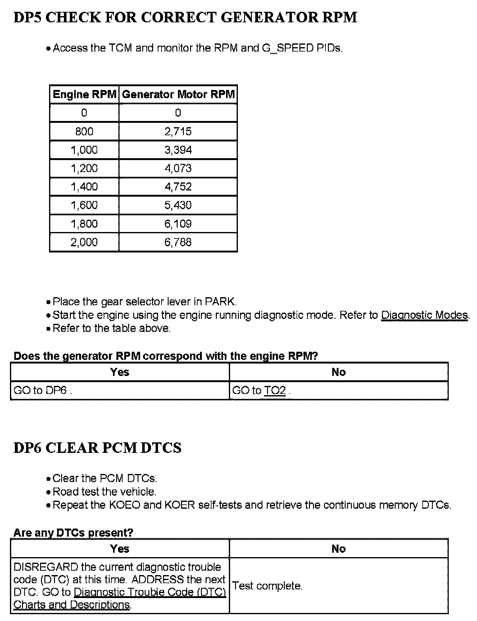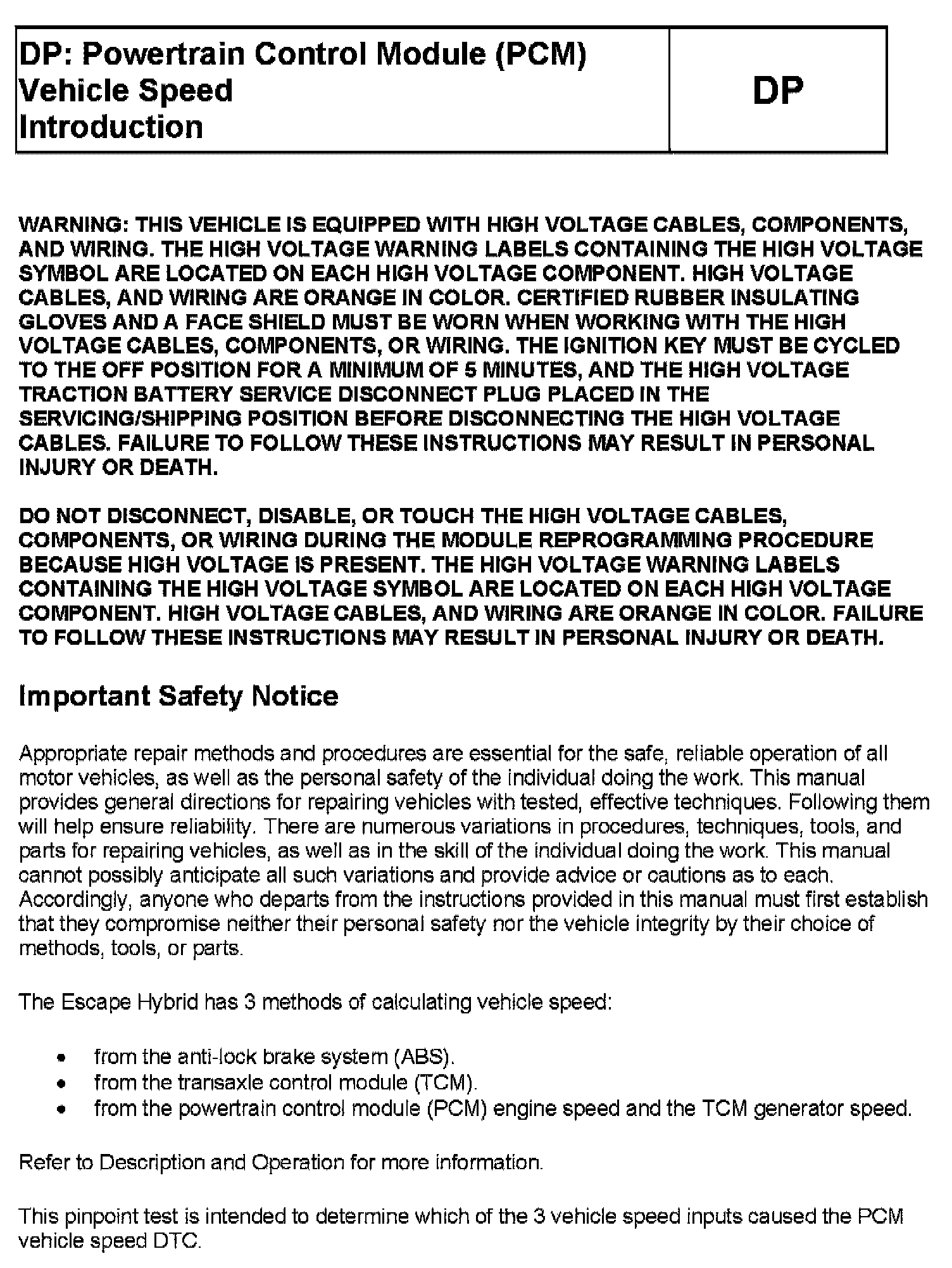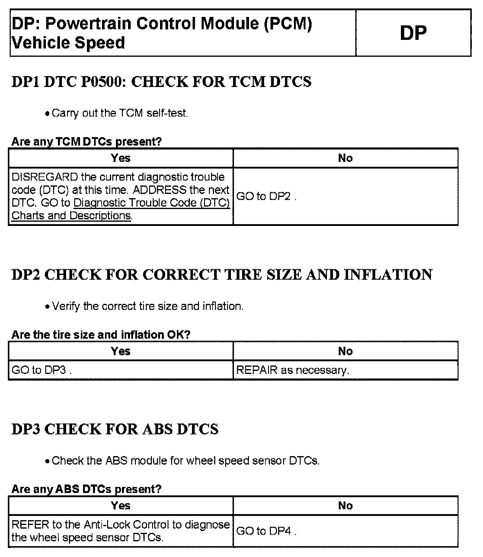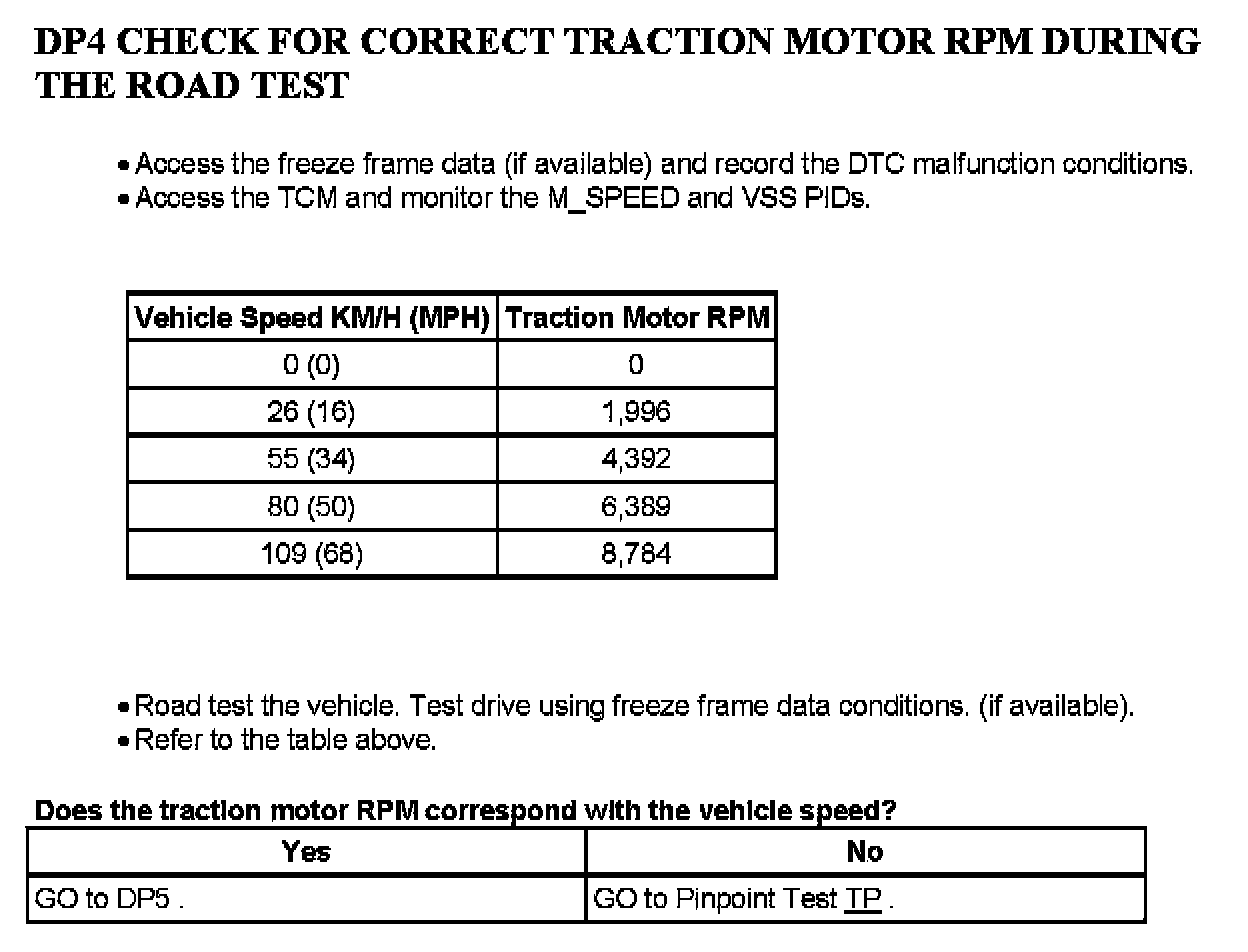 Tests DP: Powertrain Control Module (PCM) Vehicle Speed