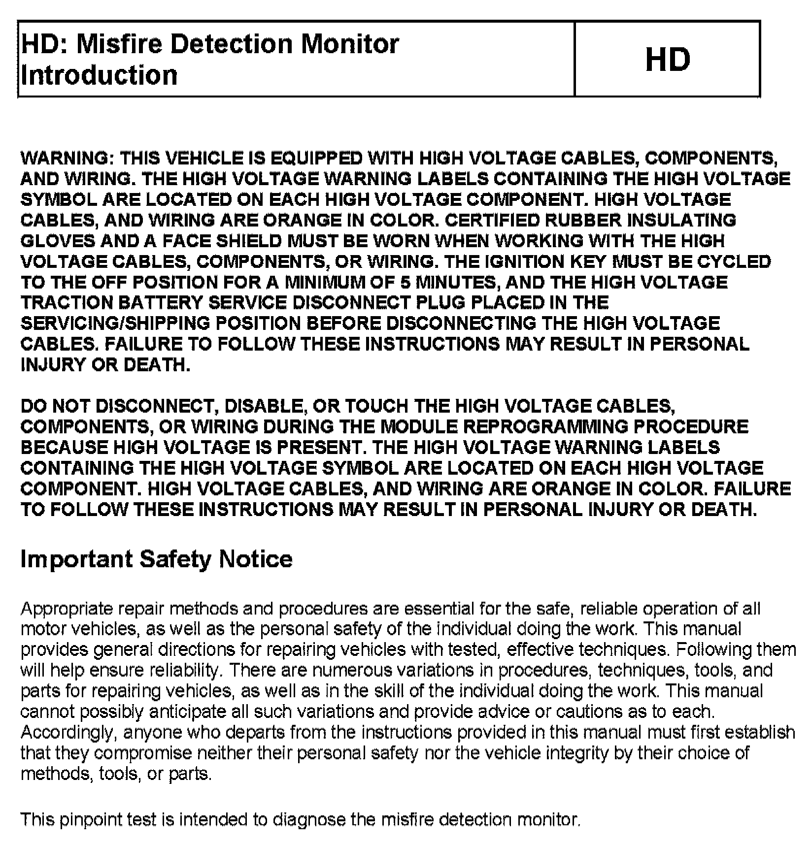 Tests HD: Misfire Detection Monitor