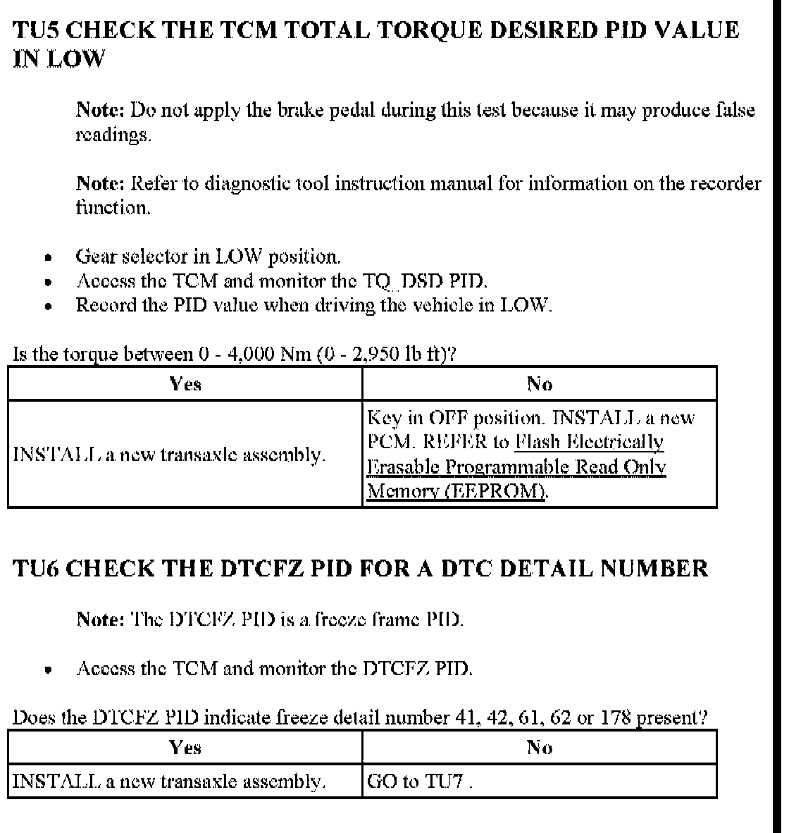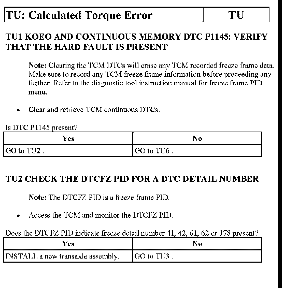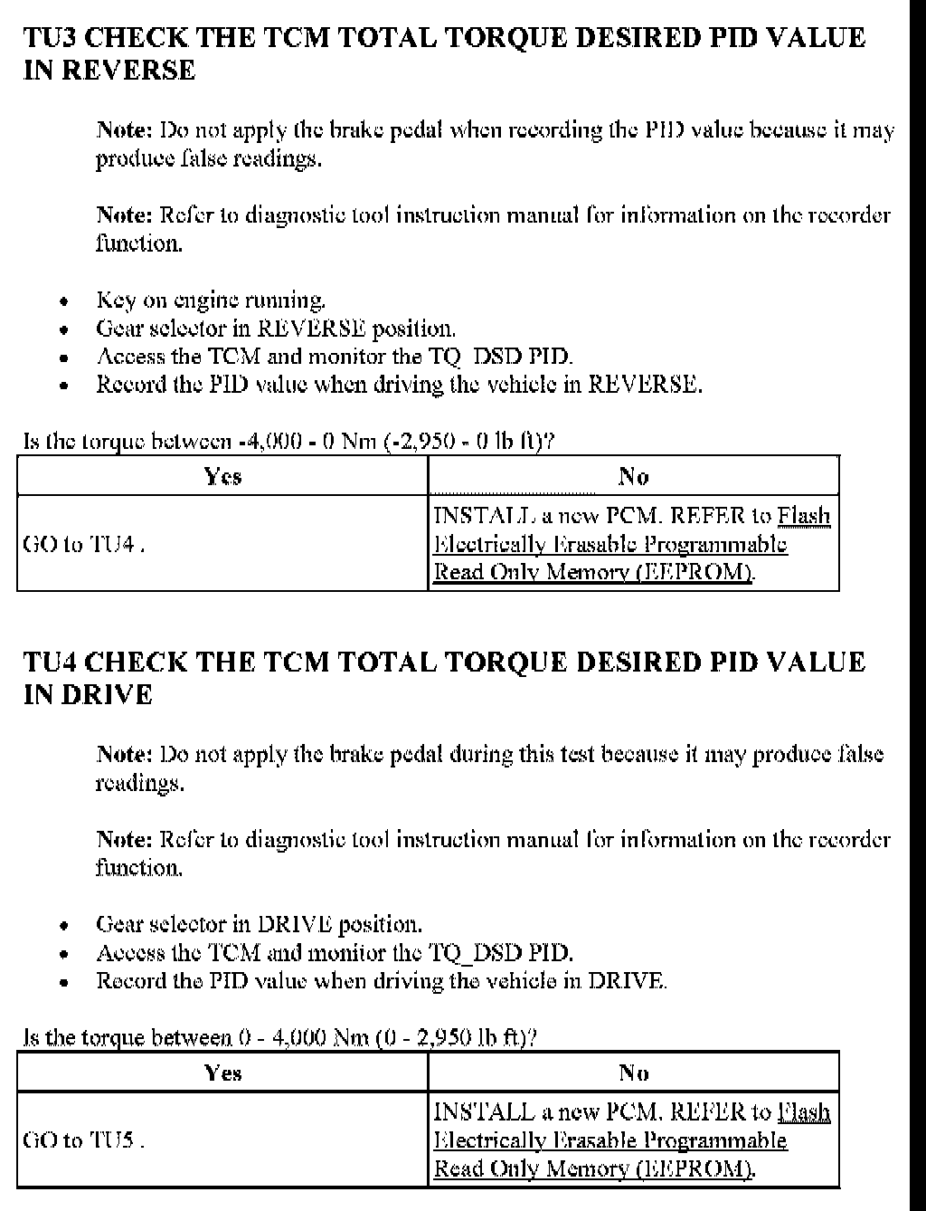 Tests TU: Calculated Torque Error