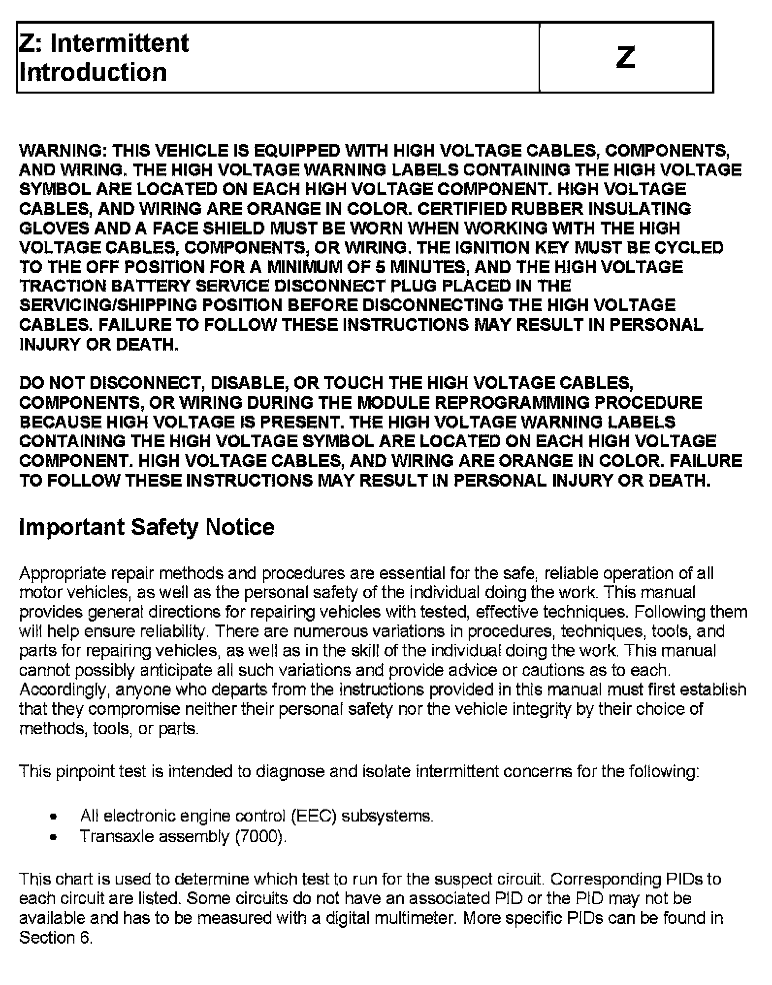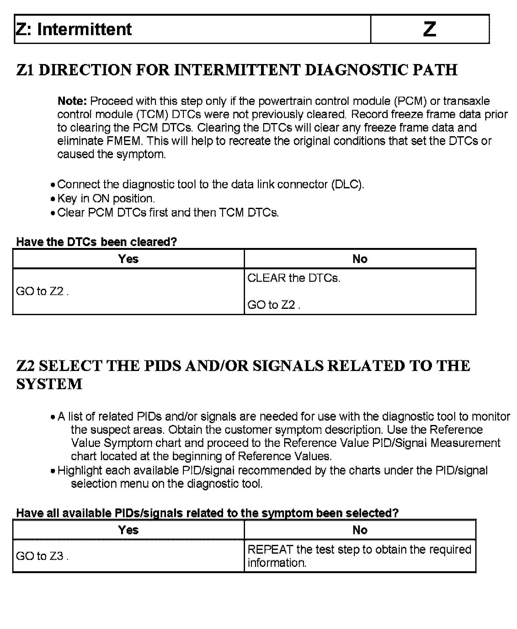 Tests Z: Intermittent