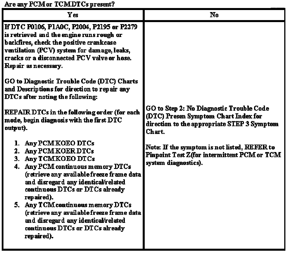 QT: Step 1: Powertrain Control Module (PCM)/Transaxle Control Module (TCM) Quick Test