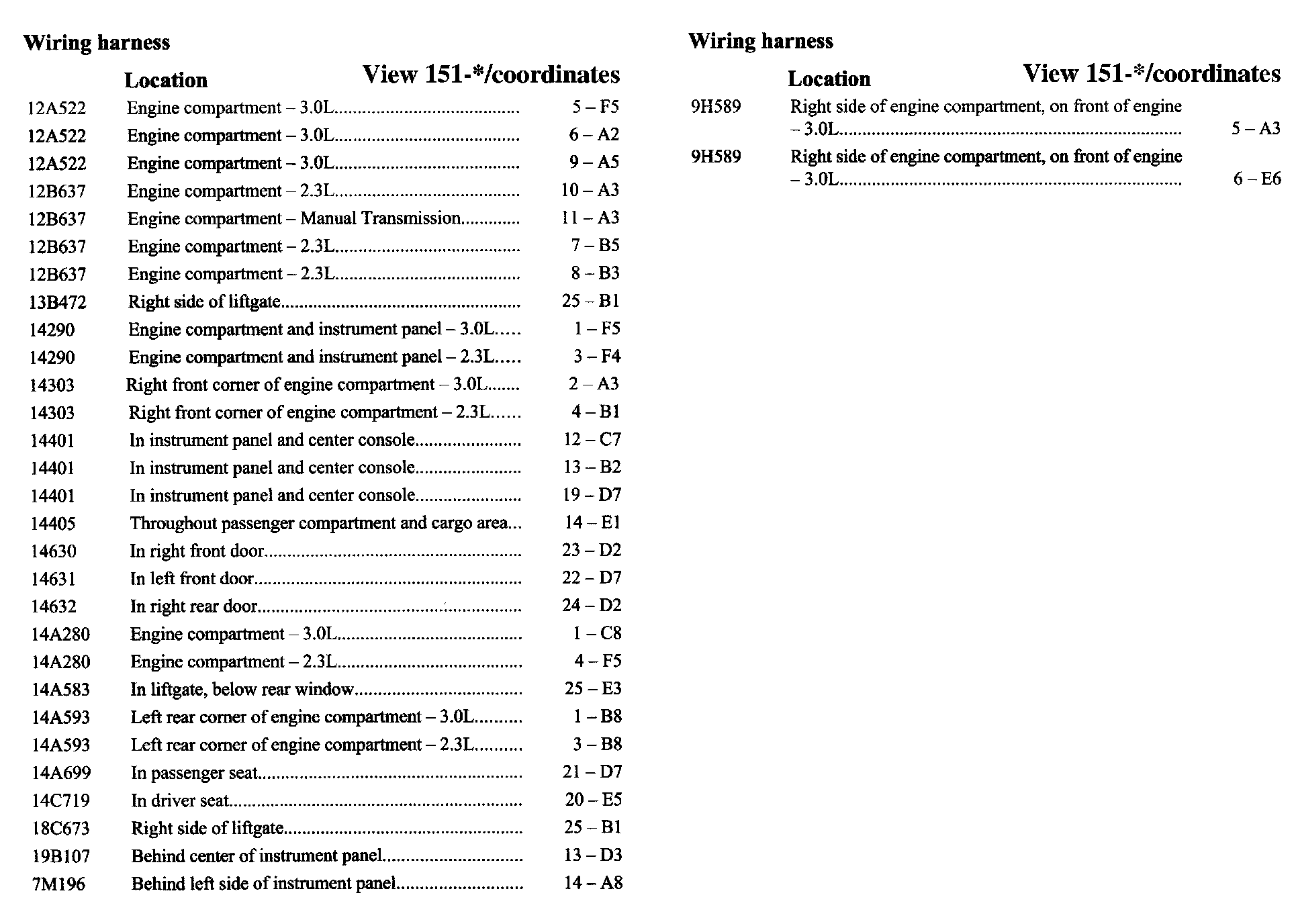 If a link on the Wiring Harness Location Index to a View is not provided, that means that the Wiring Harness and/or View in question does NOT apply to the vehicle model selected.