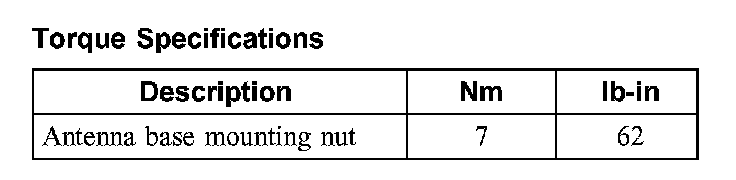 Torque Specifications: