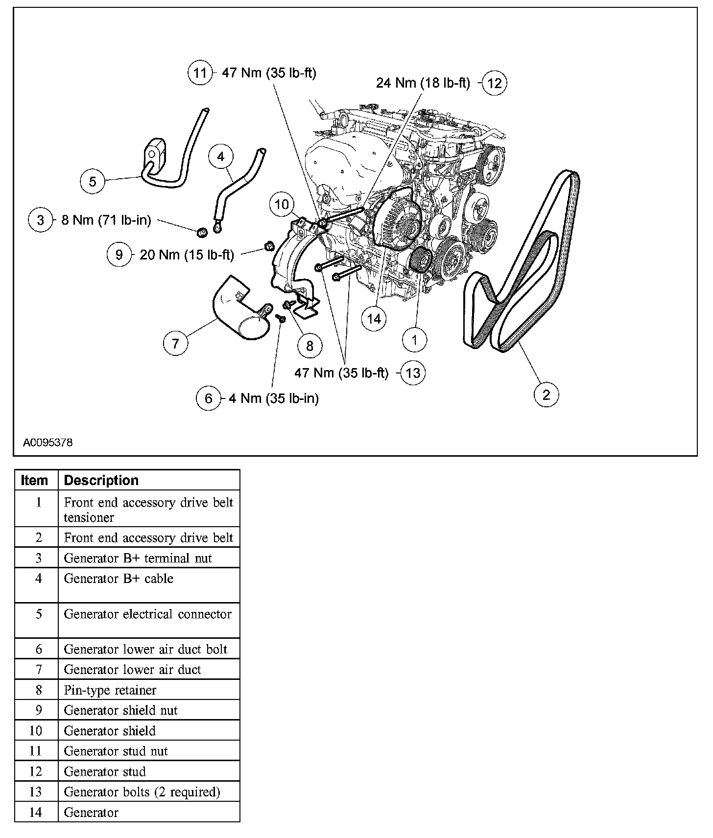 - To install, tighten to 47 Nm (35 lb-ft).
