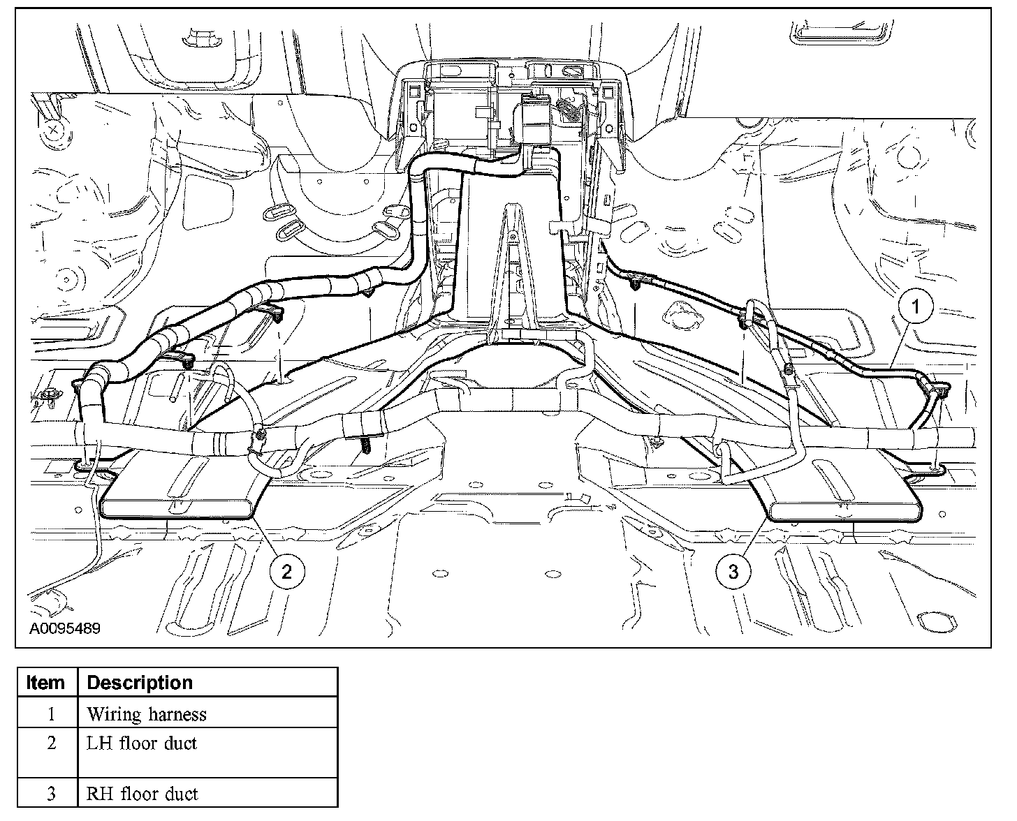 5. Separate the wiring harness from the floor ducts and position aside.
