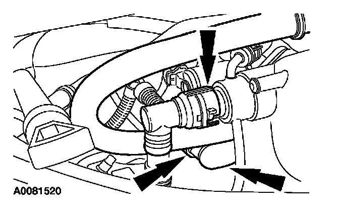 17. Connect the engine coolant outlet hose and position the hose clamp.