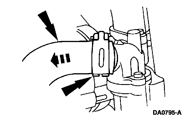 7. Compress and slide the hose clamp and disconnect the coolant outlet hose.