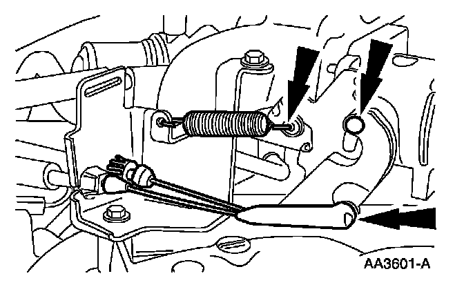 9. Disconnect the accelerator and speed control cables and remove the return spring.