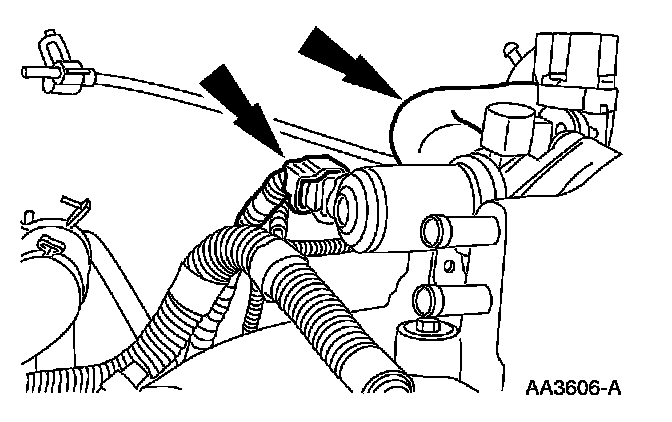 15. Disconnect the Idle Air Control (IAC) motor electrical connector and the bypass hose.