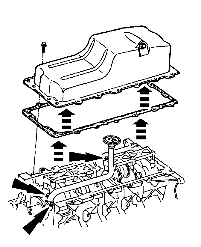 18. Remove the bolts, the oil pan, and the oil pan gasket.