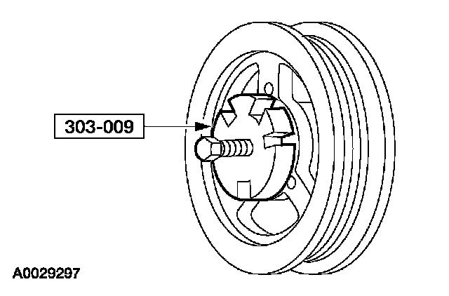 25. Remove the crankshaft pulley bolt. Using the special tool, remove the crankshaft pulley.