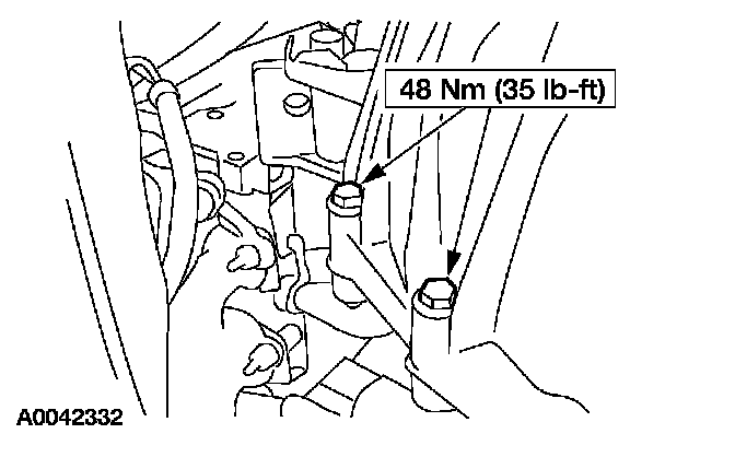 27. Install the remaining transmission-to-engine bolts and fuel line bracket.