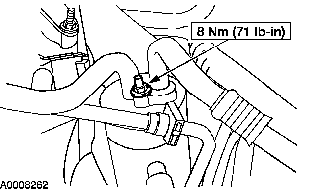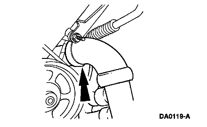 26. Position and install the heater hose at the rear of the engine.