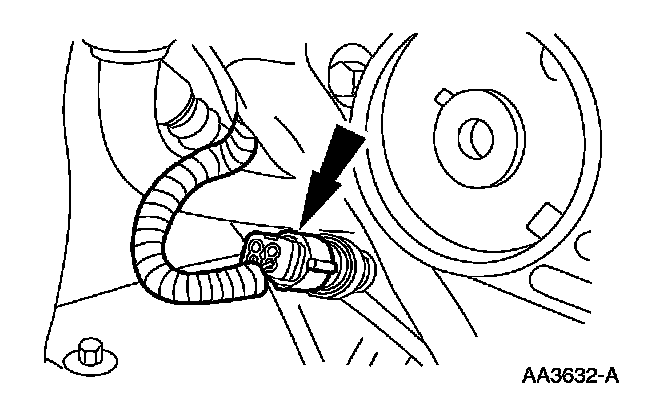12. Install the transmission oil level indicator tube and the ground strap on all vehicles.