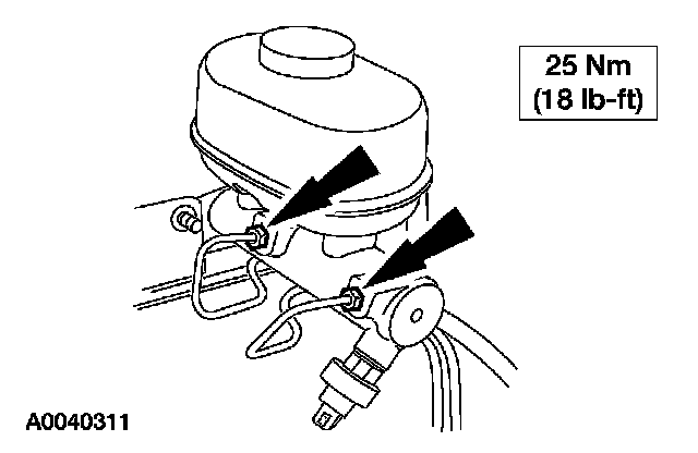 5. If the brake master cylinder is being primed at the bench, install it in the vehicle.