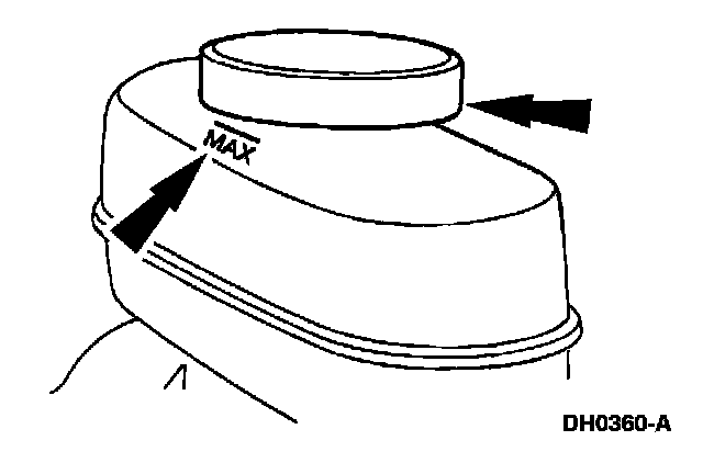 1. Clean all dirt from and remove the brake master cylinder filler cap, and fill the brake master cylinder reservoir with DOT 3 motor vehicle brake fluid.