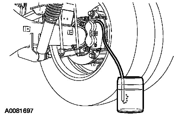 5. Repeat Steps 2, 3 and 4 for the LH rear bleeder screw, the RH front disc brake caliper bleeder screw, and the LH front disc brake caliper bleeder screw, in that order.