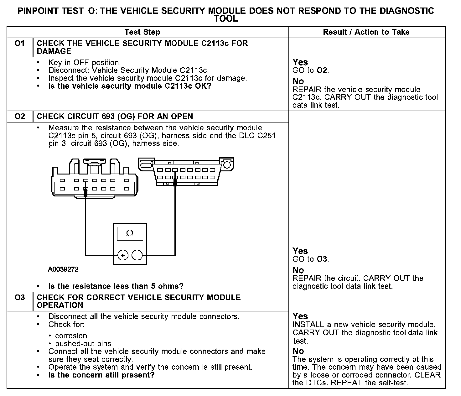 PINPOINT TEST O: THE VEHICLE SECURITY MODULE DOES NOT RESPOND TO THE DIAGNOSTIC TOOL
