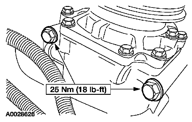 2. Remove the accessory drive belt from the A/C compressor pulley.