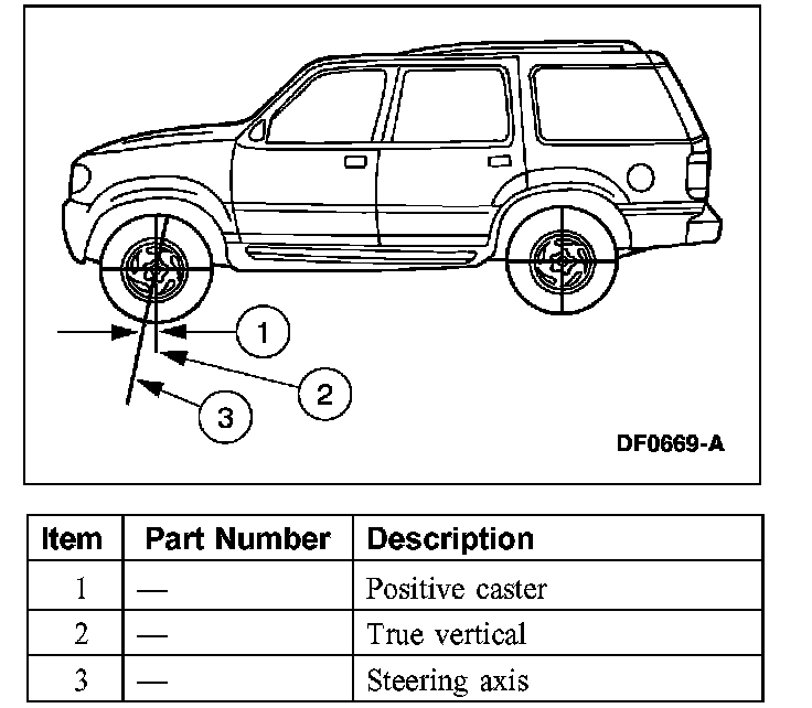 Caster is the deviation from vertical of an imaginary line drawn through the ball joints when viewed from the side. The caster specifications will give the vehicle the best directional stability characteristics when loaded and driven. The caster setting is not related to tire wear.