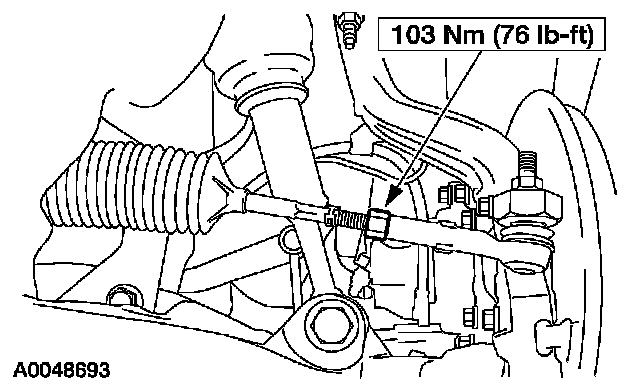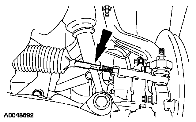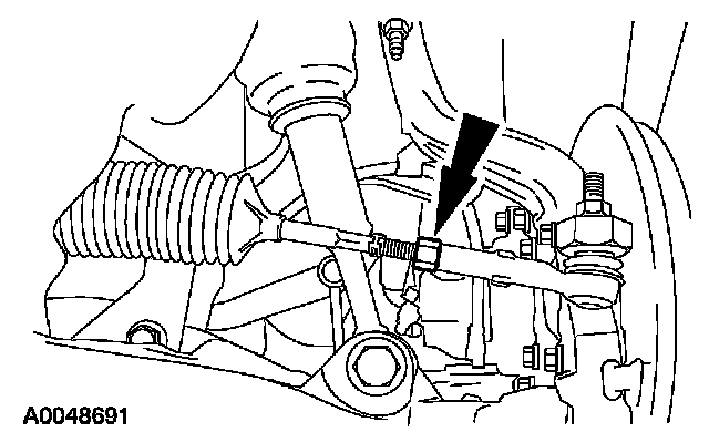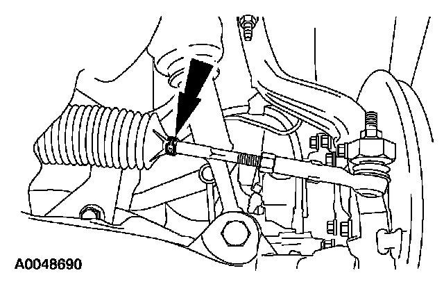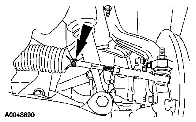 3. NOTE: Do not allow the steering gear bellows to twist while rotating the spindle tie-rod.