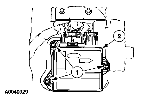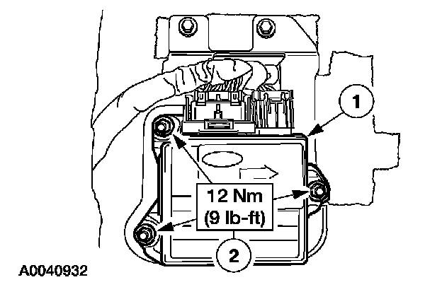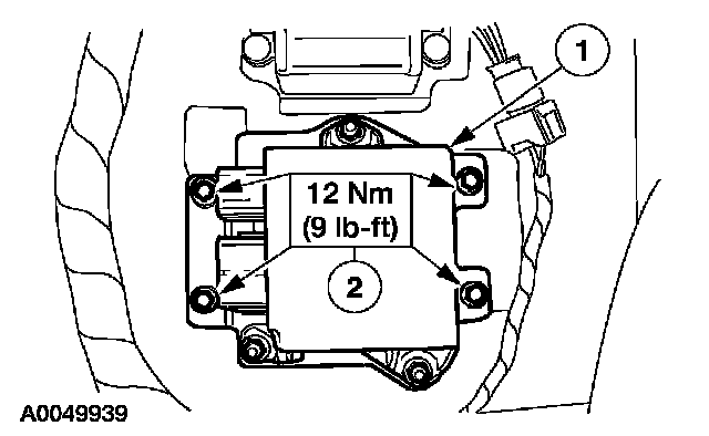 1. WARNING: The tightening torque of the air bag restraints control module (RCM) bracket retaining bolts is critical for correct system operation.