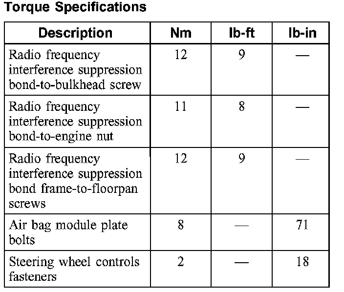 Torque Specifications: