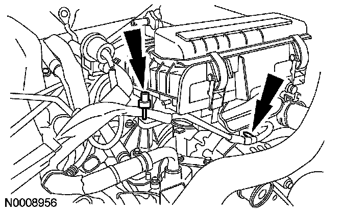 5. Remove the 2 generator B+ cable locators from the generator bracket and the air cleaner stud bolt.