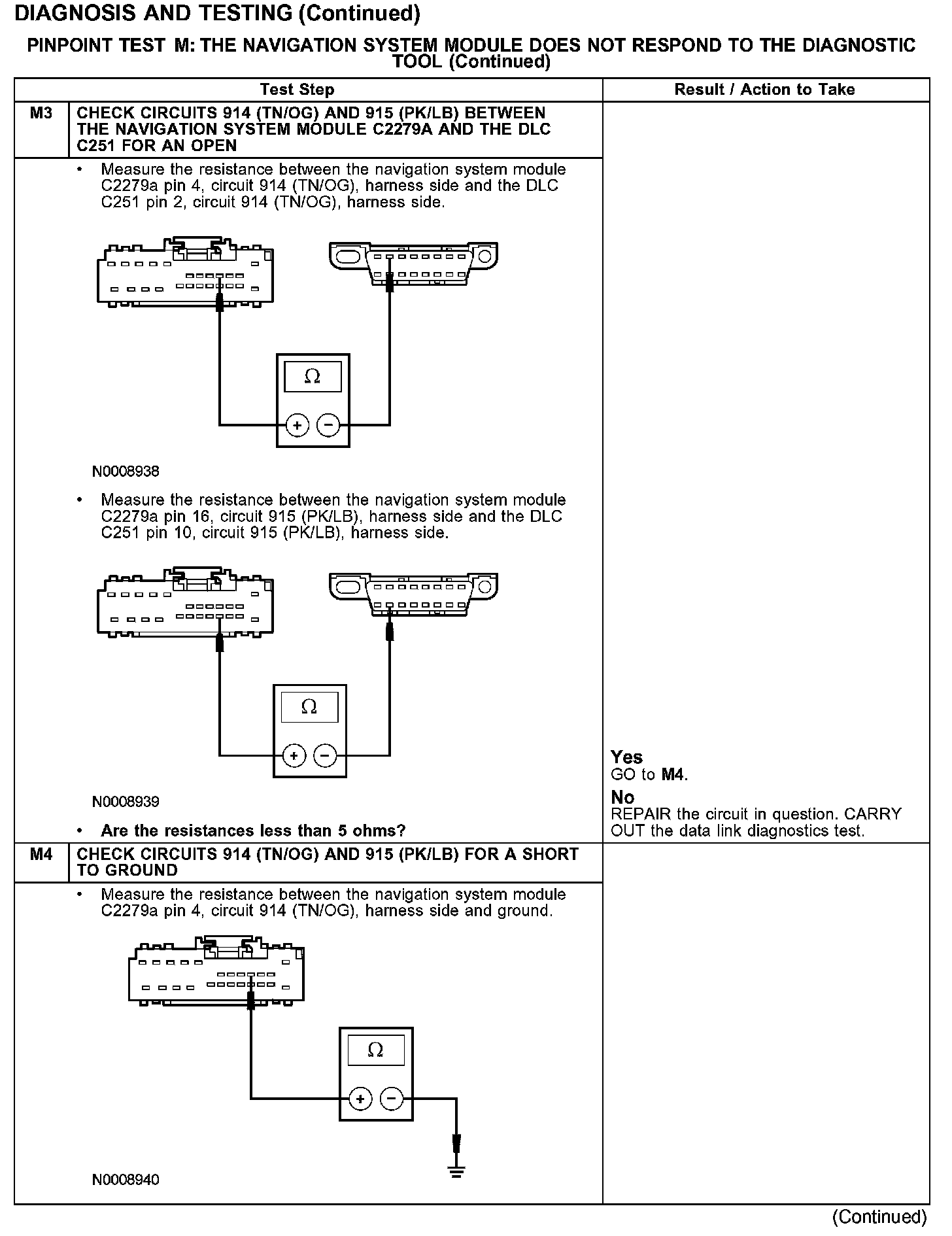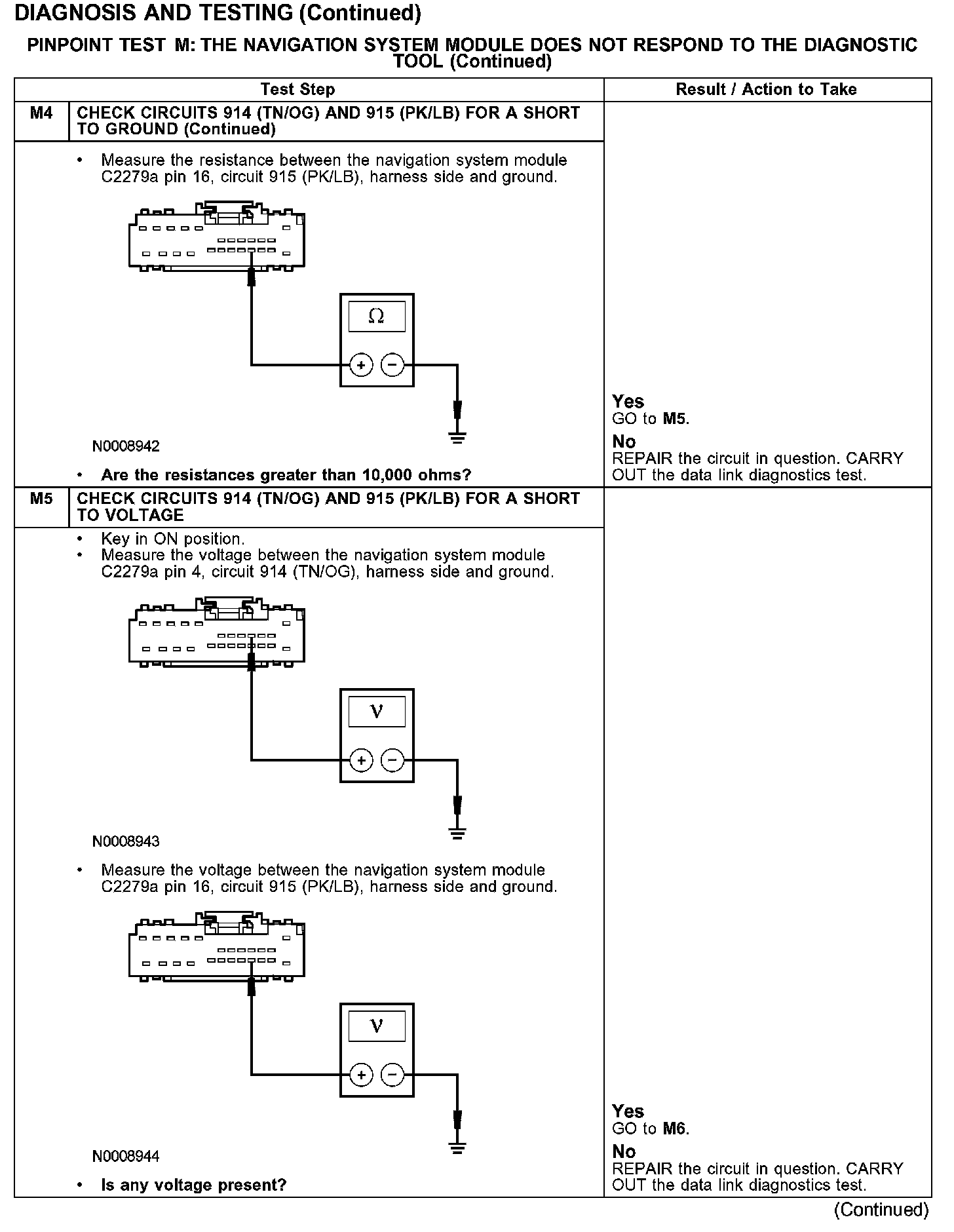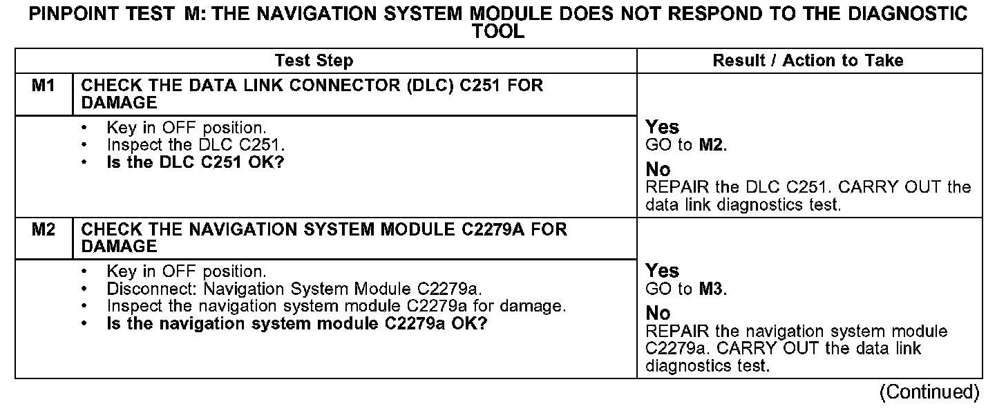 PINPOINT TEST M: THE NAVIGATION SYSTEM MODULE DOES NOT RESPOND TO THE DIAGNOSTIC TOOL