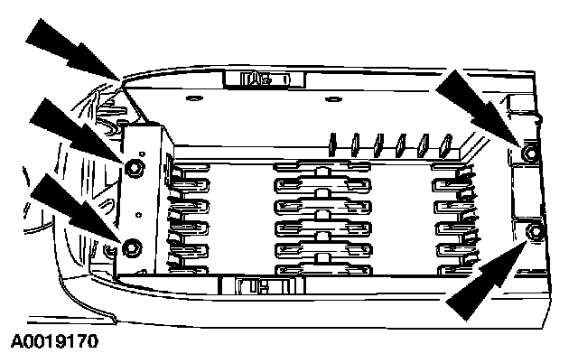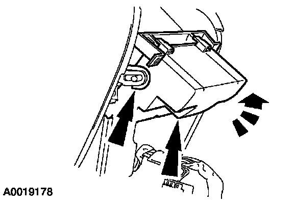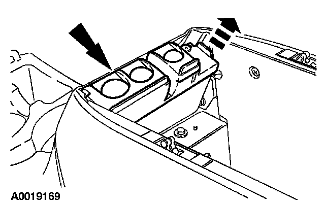 8. Disengage the retaining clips. Remove the console rear finish panel.