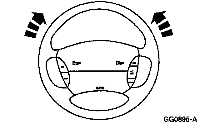 2. Turn the engine off, and hold the steering wheel in the "straight forward" position by attaching a rigid link from the steering wheel to the brake pedal.