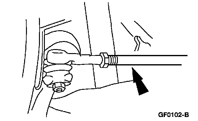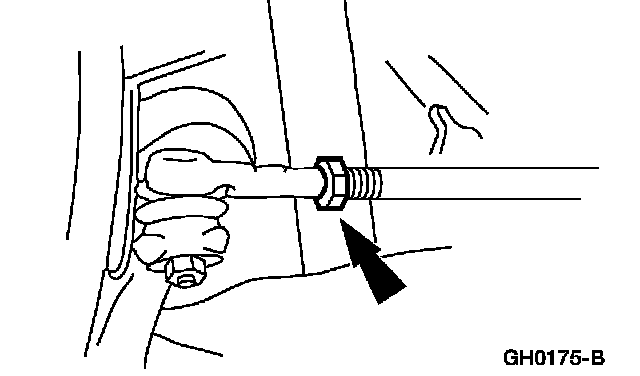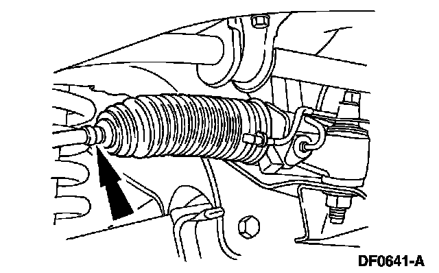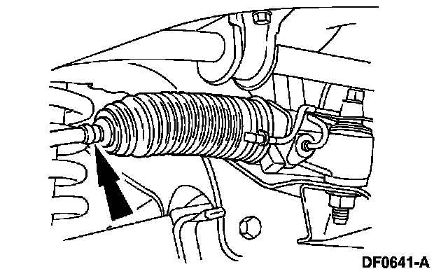 4. NOTE: Do not allow the steering gear bellows to twist when the front wheel spindle tie-rod is rotated.
