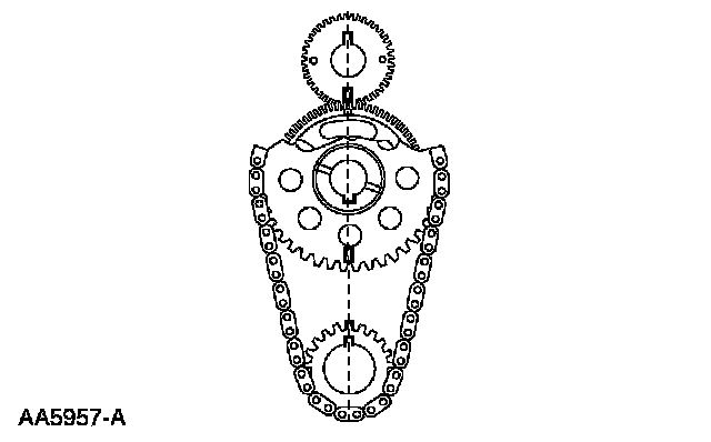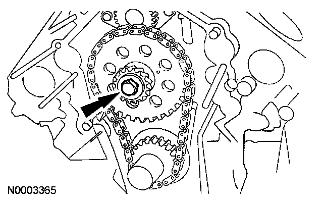 4. urn the camshaft sprocket so that the timing mark is at the 12 o'clock position and is lined up with the timing mark on the balance shaft at the 6 o'clock position.