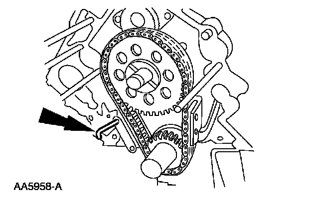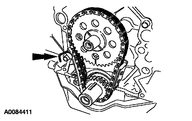 4. Compress and install a retaining pin to hold the timing chain tensioner.