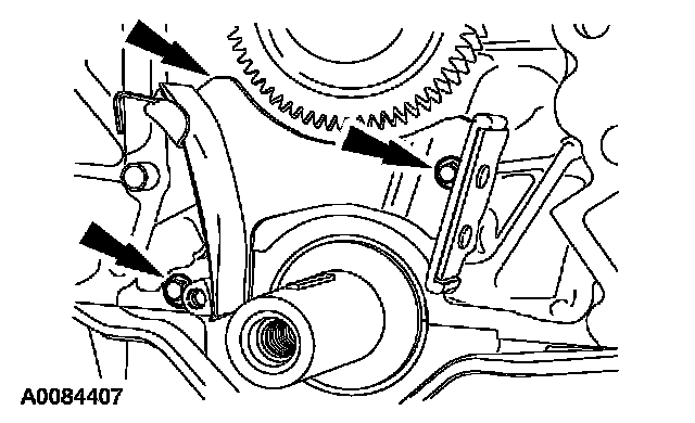 6. Remove the bolts and the timing chain tensioner.