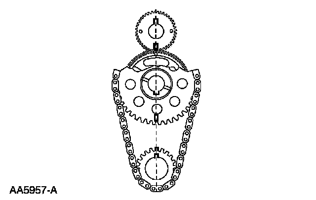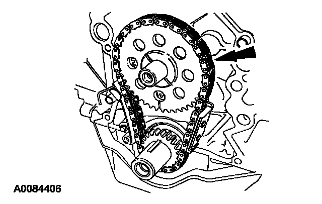 5. Remove the camshaft sprocket, the crankshaft sprocket and the timing chain as an assembly.