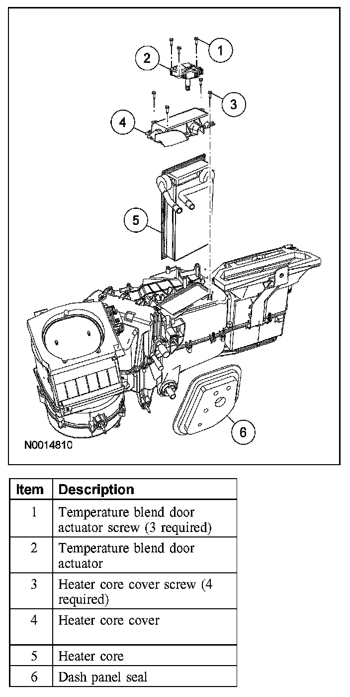 6. NOTE: The heater core seal must be correctly installed to prevent airflow from bypassing the heater core.