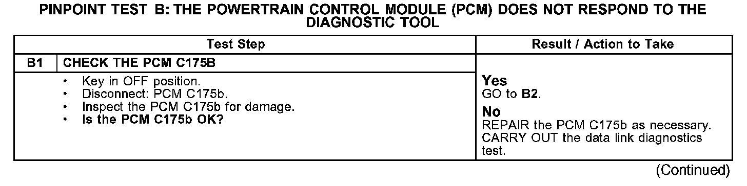PINPOINT TEST B: THE POWERTRAIN CONTROL MODULE (PCM) DOES NOT RESPOND TO THE DIAGNOSTIC TOOLTest B1: