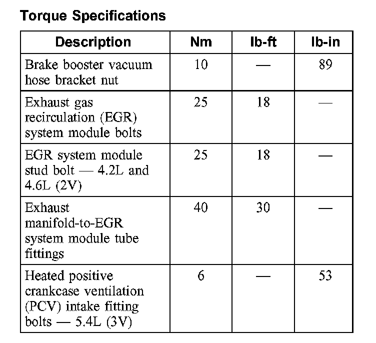 Torque Specifications:
