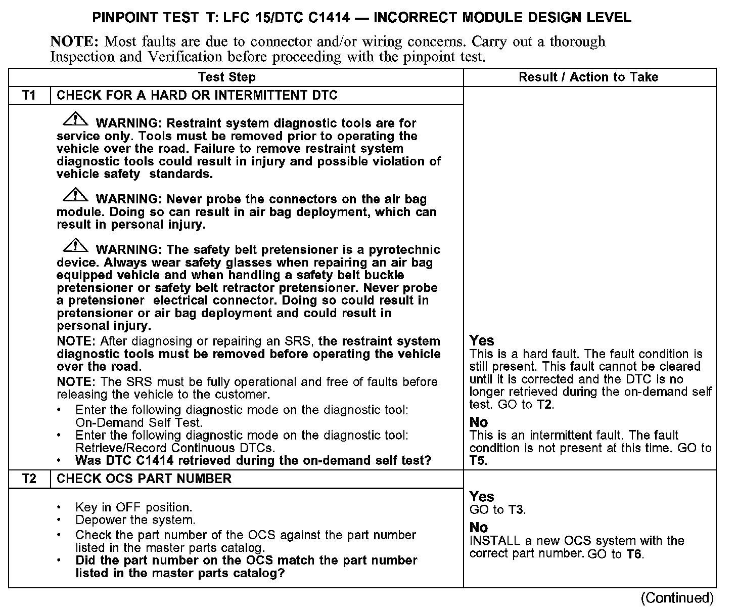 PINPOINT TEST T: LFC 15/DTC C1414 - INCORRECT MODULE DESIGN LEVELT1-T2: