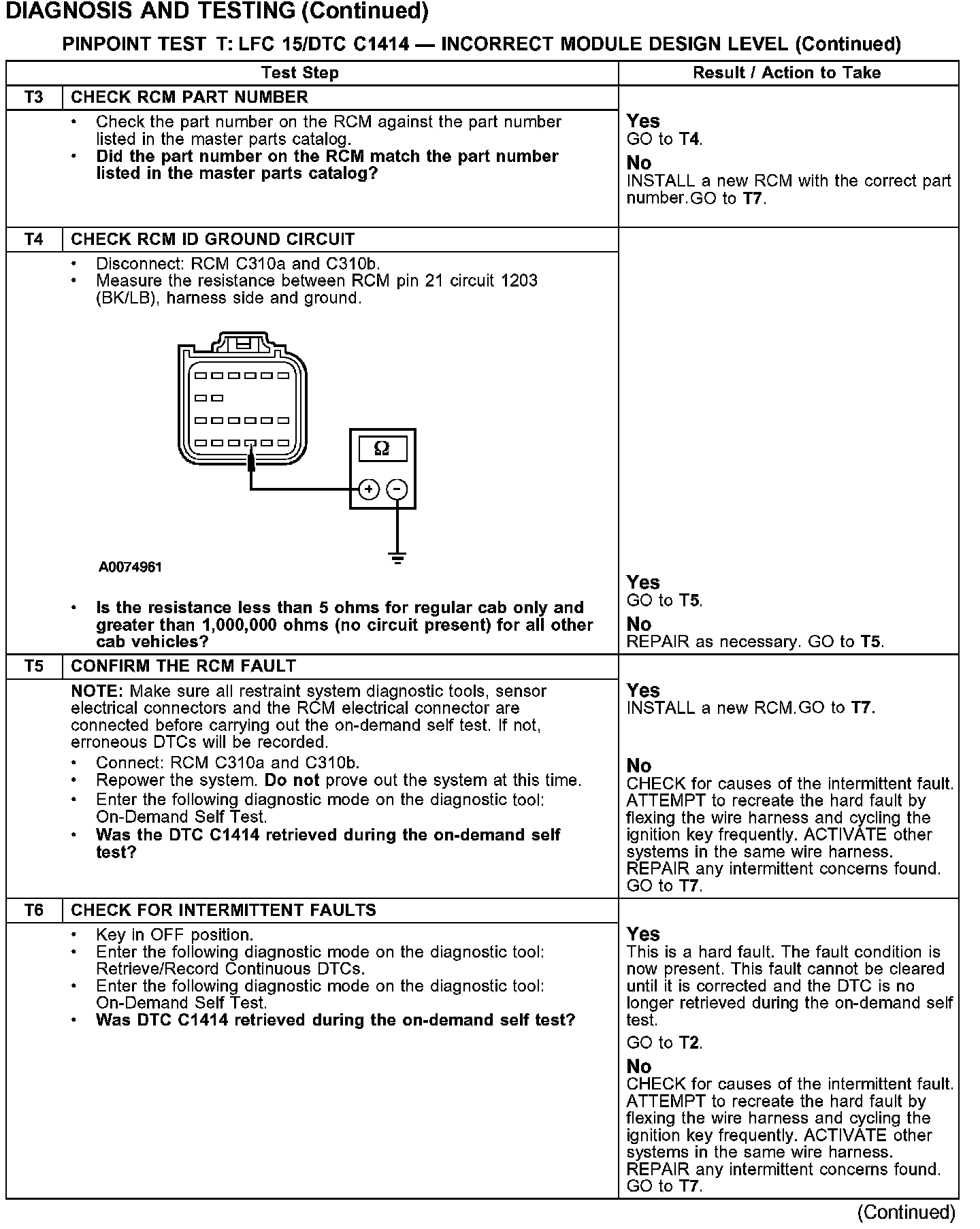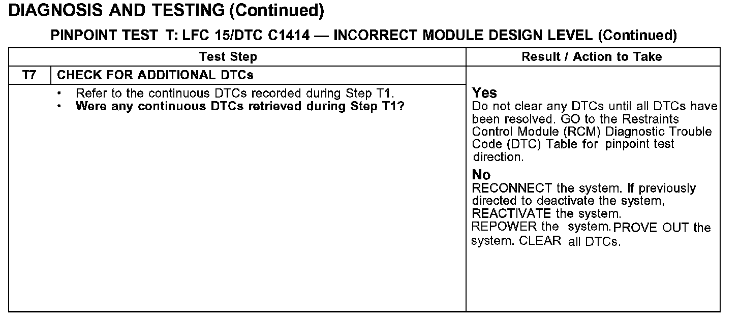 Test T: LFC 15/DTC C1414 - Incorrect Module Design Level