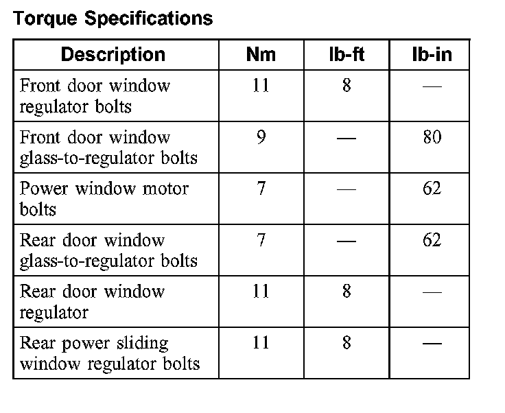 Torque Specifications: